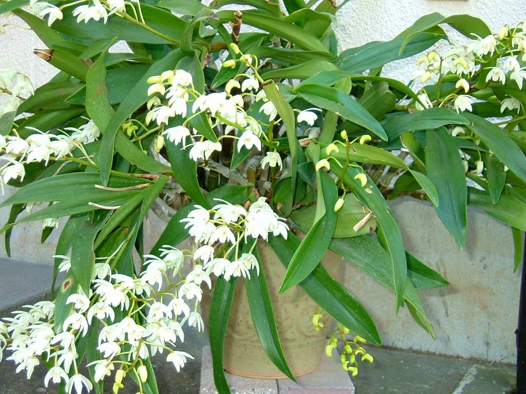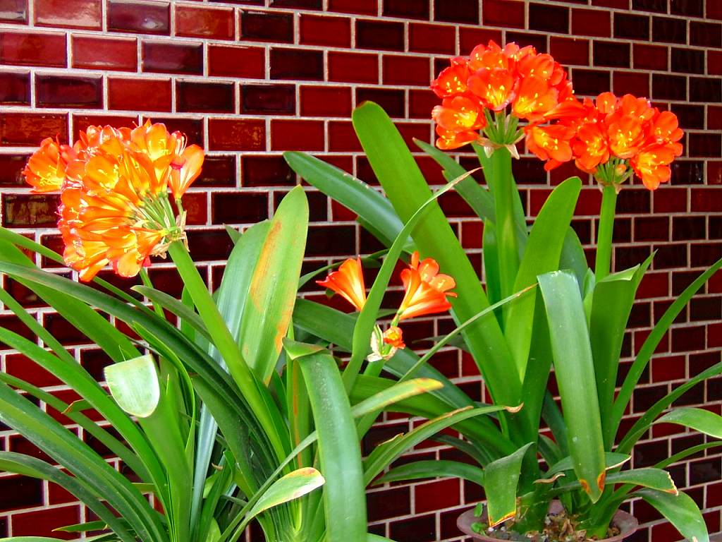 用事で訪ねた友人がルスだったので、玄関できれいに咲いていた「君子蘭」と蕾を抱えた「スズラン」を取ってきました。但しカメラでね。