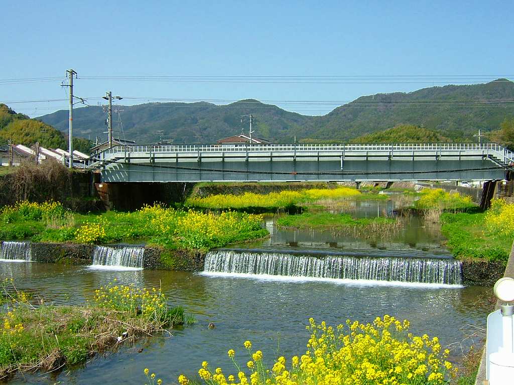 通津川沿いの県道は徒歩や車では感じませんが、自転車で走ると山へ向かって登っているのを実感します。従って川にはこのような堰が幾つも造られています。堰を流れ落ちる水を眺めるのが好きです。