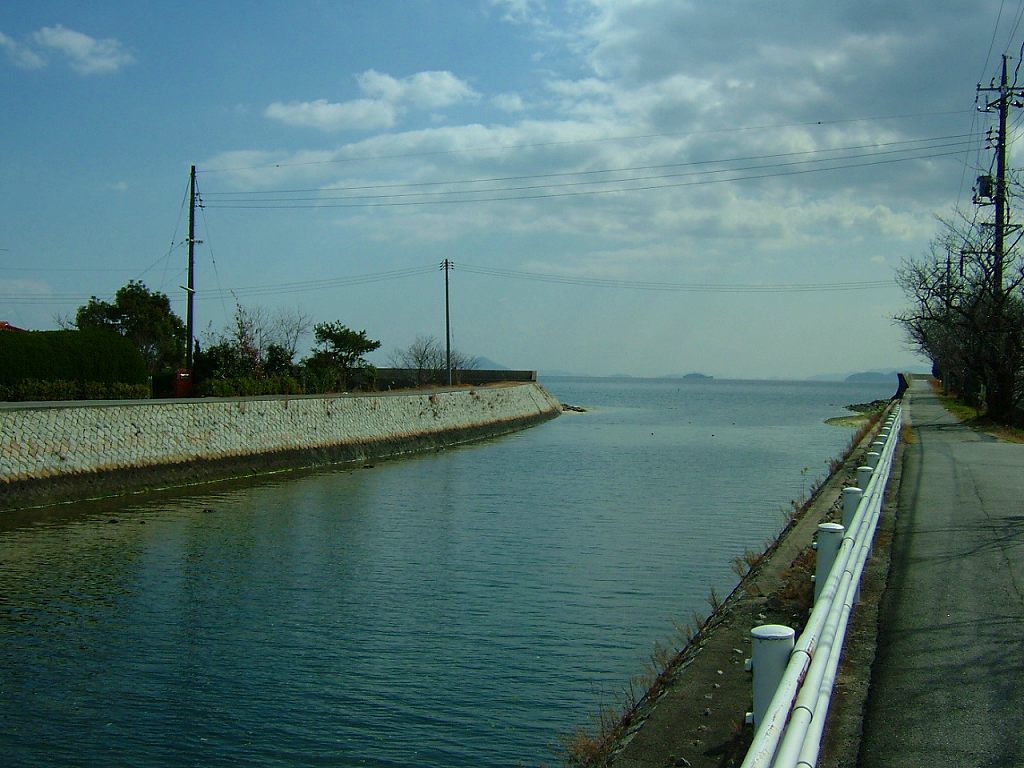 丁度我が家の前辺りの通津川河口です。干潮時には川底が現れ、潮が満ちてくると季節によってチヌ・フグなどなどが泳ぎます。