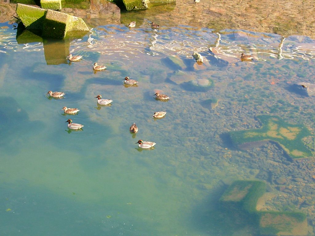 カモたちが気持ち良さそうに遊んでいます。カワセミとは違い、カモたちはあまり水に潜ったりしないで、ひたすらくっついたり離れたりしています。クリックすると拡大できます。美味しそうなカモでしょ?これ勿論冗談ですよ。