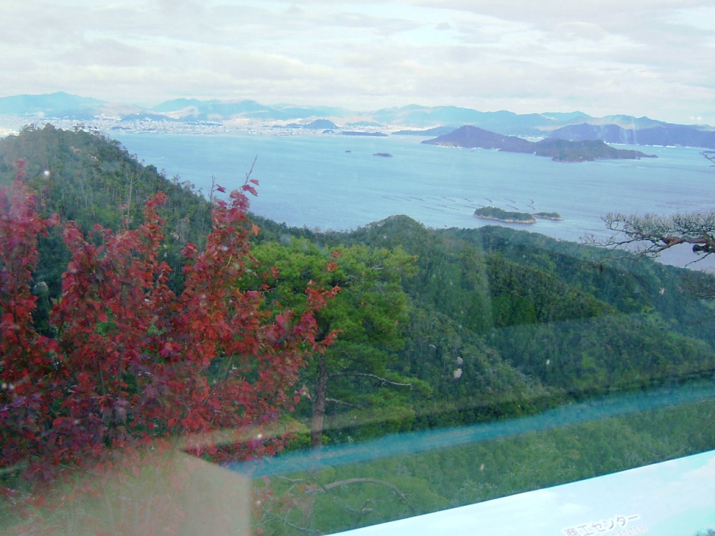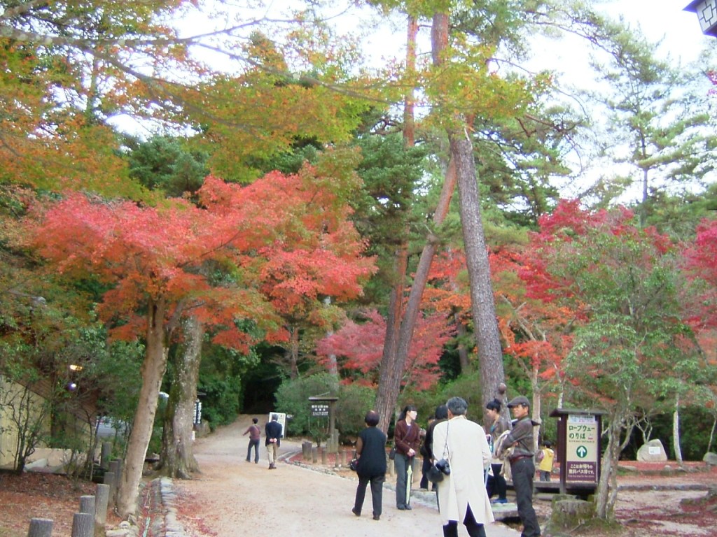 広島駅に迎えて、お好み焼きで腹ごしらえを済ませ、先ず宮島を訪れました。早朝、雨の東京を出てきた彼らが雨雲を取り払ってくれたようで、予報に反して徐々に明るく晴れた空になりました。修学旅行生で混みあった厳島神社参拝は早々に済ませて向かった紅葉谷公園は、ドンピシャの紅葉でした。弥山へのロープウェイからの紅葉と瀬戸内海も文句なしの美しさで皆で感嘆の声を上げるほどでした。案内人の私は自分の手柄のように鼻の穴を膨らませていたかも・・。下りロープウェイから観た茜色の夕焼けもまた素晴らしいものでした。