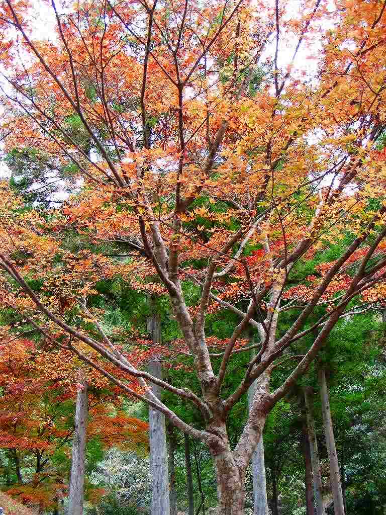 雨を懸念しながら「石仏めぐり」に行って来ました。19人の善男女が車に分乗して30分のドライブ。高森と言うところにある「真言宗・二井寺山極楽寺」が今月の目的地です。ここには昨年紫陽花の頃にも行きましたが、モミジの木が沢山あったので、「秋も美しいに違いない」と今年の予定に組み込まれました。ねらい通りの紅葉で、風に舞い落ちる色とりどりの葉が格別でした。少し早めのお弁当を食べて帰途についた途端雨が降り始め、さすがに善男女の集団は強いと実感。