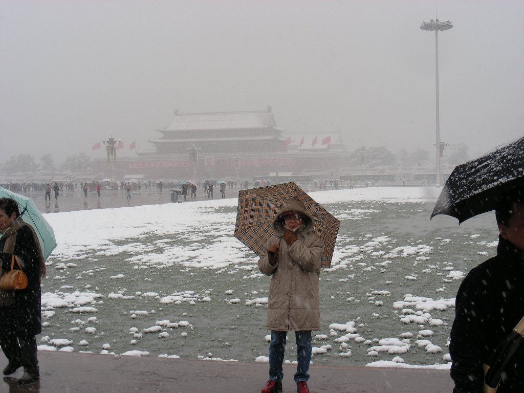極安料金のツアーで北京に行って来ました。超過密スケジュールの4日間でしたが、様々な歴史的遺産・人間模様・挙句に例年より半月早いという初雪にも遭遇して、思い返せばそれなりに楽しい旅でした。初雪は水分が多い上に10㌢も積もって、福岡空港では「何事か・・」と奇異な目で見られた冬支度が役立ちました。外気温が-6℃でバスの中が-3℃など日本の旅では考えられない事もありました。急激な生活の変化で北京の町は電力不足のため全体的に「暗いなー」と感じられました。日本が必要以上に明るく、それにすっかり毒されていたようです。帰国してみると日本列島も冷え込んでおり、北京の緯度を考えれば雪が降っても不思議はないと納得できました。国会が開会中だったり日本シリーズで我が巨人が頑張っていたり、大リーグでは松井がホームランを打っていたり・・また忙しい日々が始まります。