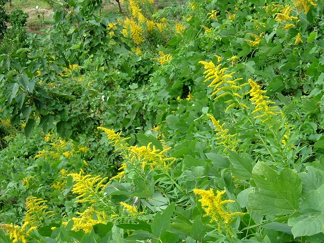 大島で出会った花たち。最後の命を開かせている「月見草」と、今が盛りの「(嫌われ者の)背高泡立ち草」