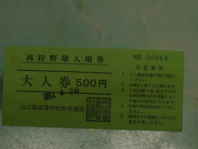 岩国高校が負けた20日の入場券ですが、心なしか「影がうすい!」