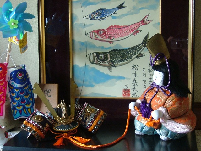 我が家の五月飾りは変わり映えがしません。左側の小さな鯉のぼりは「お菓子のおまけ」です。