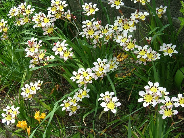 「きんれんか」と「フリージア」。「きんれんか」が昔から大好きですが、残念ながら他所のお宅の玄関先で見つけたものです。こちらに来て良く見かけるこの「フリージア」は珍しい色をしていると思っていましたが、通津では普通でした。とても可愛いです。