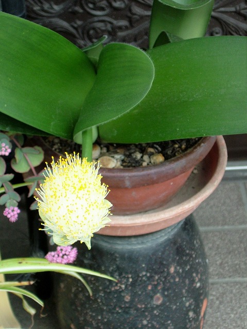 金宝樹の花が一つ二つまた咲いています。見れば見るほど面白い形ときれいな赤色で見飽きることがありません。年に数回思いがけず咲くようです。