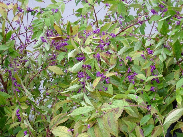 秋の花「紫式部」が咲いていました。地味だけど可愛いです。