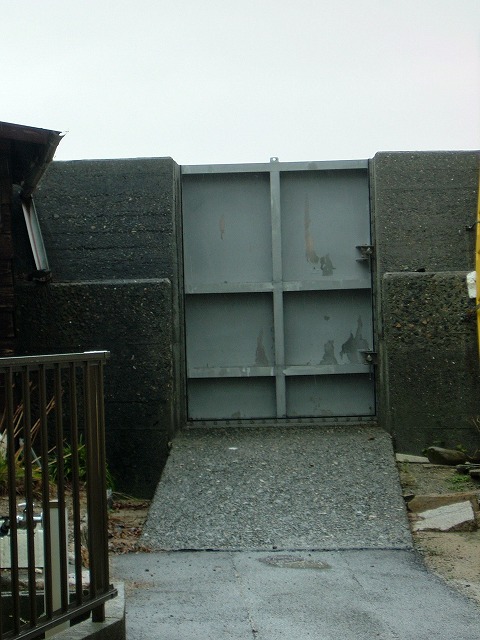 我が家から歩いて2分の海への入り口です。家に例えるなら「お勝手口」ってとこですかね。台風などで高潮が懸念される時には、厚い扉が閉められます。