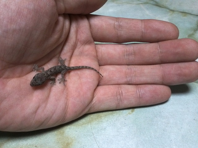 息子の手の中にいるのは「赤ちゃんヤモリ」です。爬虫類は苦手(と言うより憎んでいる)ですが、ヤモリは家守と言うし、毎夜台所のガラス戸の外で猟をしているのを内側から見ている分には平気です。いつも2匹がやってきますが、10日位前にその1匹の尾っぽが短くなっていました。息子が言うには「ヤモリやトカゲは自切できる」と。その時は「ふ~ん」と聞いていました。先日来客の男性と息子が「トカゲって凄い」「敵が来ると尻尾を自切して、その間に逃げる」「残した尻尾が生きてるように動く」などと、食欲がなくなるような話で盛り上がっていました。それを聞いて「トカゲはどうやって尻尾を切るのか」との疑問が湧きました。「勝手に切れるんだよ」と言うけれど、手も足も使わずに「どうやって?」と納得がいきません。彼らも「だって切れるんだものね」と煮え切らない返事です。世の中で様々な問題が生じた時に「○○に詳しい○○さん」と言うのがTVに出て来るのを観て、「何でも専門家がいるんだな~」と常々感心しています。だからきっと「トカゲの尻尾切り」に詳しい○○さんんもいるはずよね。「教えて!子ども電話相談室さん!」