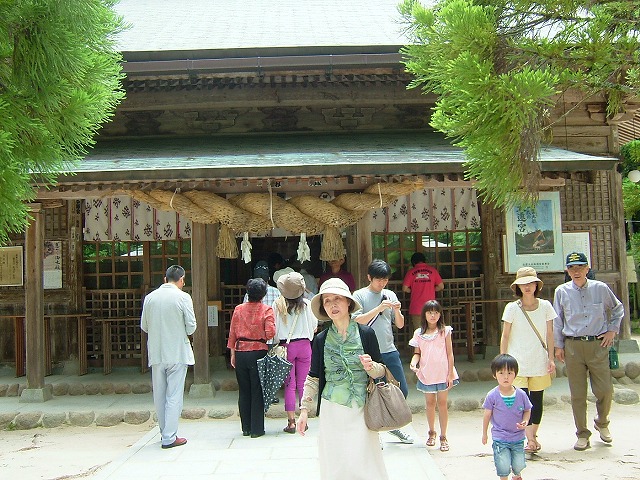 40年近く会っていない友人二人が遠路訪ねて来てくれるというのに、このところ無かったような土砂降りで明けました。それでも11時前に錦帯橋空港で出迎えた時には小降りに・・・。古希前後の3人で行動開始しました。電車で広島へ。遅い昼食は勿論「広島お好み焼き」。世界遺産の平和公園を歩く頃には陽も射して蒸し暑いったら!資料館は何度訪れても重~い気持ちになりますが、福島原発の事故の後だけに色々と考えさせられ、その近辺から来てくれた彼女たち共々無口になってしまいました。夕方になって市電で広島を脱出して宮島へ。神社の入場時間(夏場は18時)にやっと間に合って回廊を渡りましたが、観光客は外国人の方が多いくらいでした。観光客相手の土産物店は早仕舞いで、ほとんどが閉まって静かなものです。