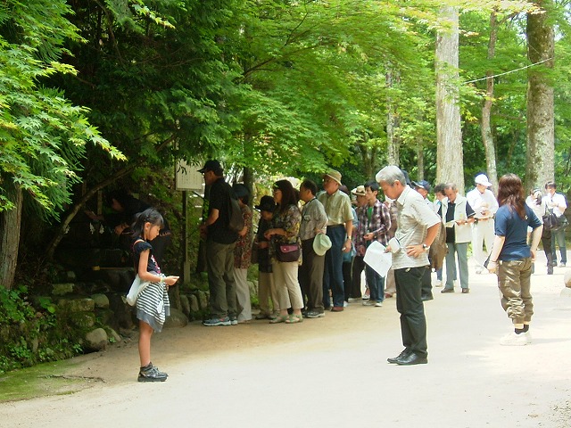 殿です。セットを購入した人はこんな風に行列して、右のようにセットに入っている「(願い)石」を洗い、願いを記したものを奉納。詳しくは解りませんが、もう一つの「(叶う)石」が「世界で唯一の自分だけの守り石」になるらしいのです。