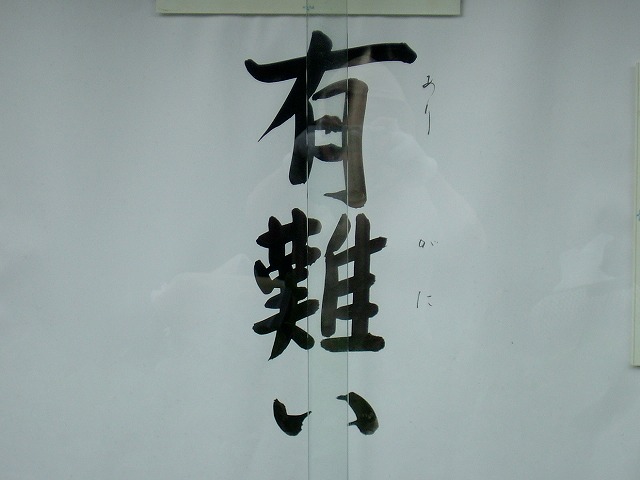 お寺の掲示板です。去年も出ていた気がしますが、この頃はこうして日々を生きていることが「有難い」と思えるようになりました。