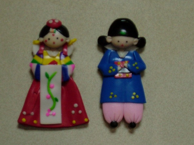 韓国旅行で買った数少ない買い物の一つです。「重くない」のが第1条件ですからこの人形も身の丈6㌢です。磁石で冷蔵庫に貼りついています。